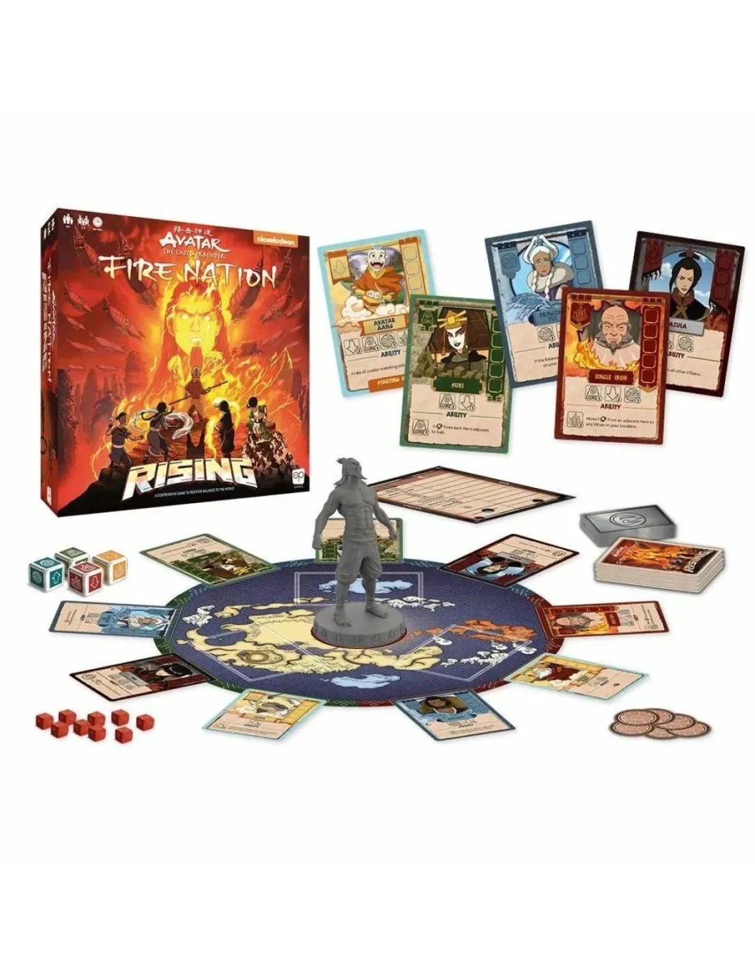 Avatar: The Last Airbender Fire Nation Rising is a cooperative card and dice game for 1-5 players who take command of Avatar Aang, Katara, Sokka, Toph, and Zuko as they fight back against the Fire Nation to restore balance to the world.