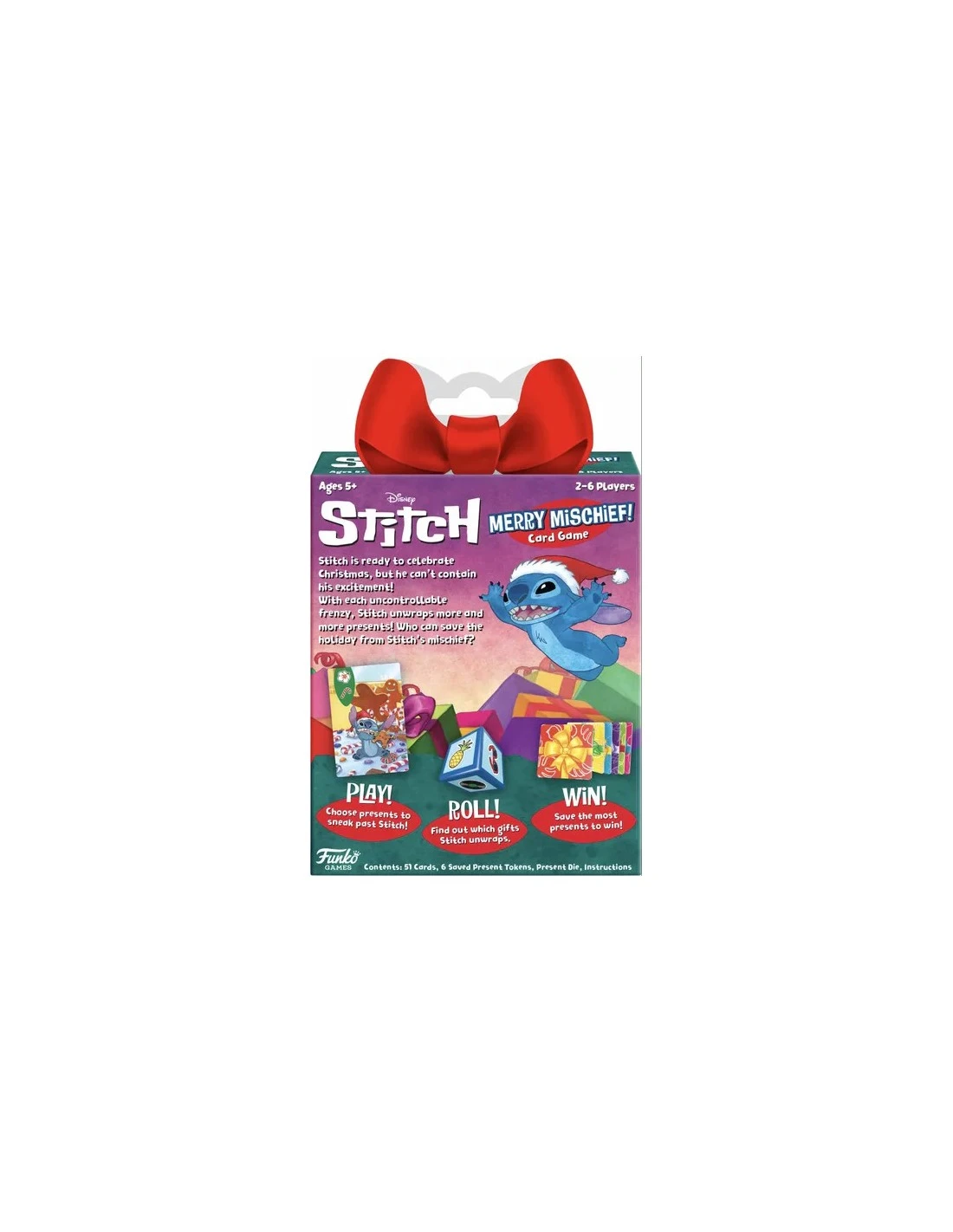 Push your luck choosing which presents to play. Watch for naughty and nice Stitch faces that affect how often you roll the die and how likely Stitch is to unwrap your presents. Custom die and watercolor-style card illustrations bring this fanfavorite character to life on your table!