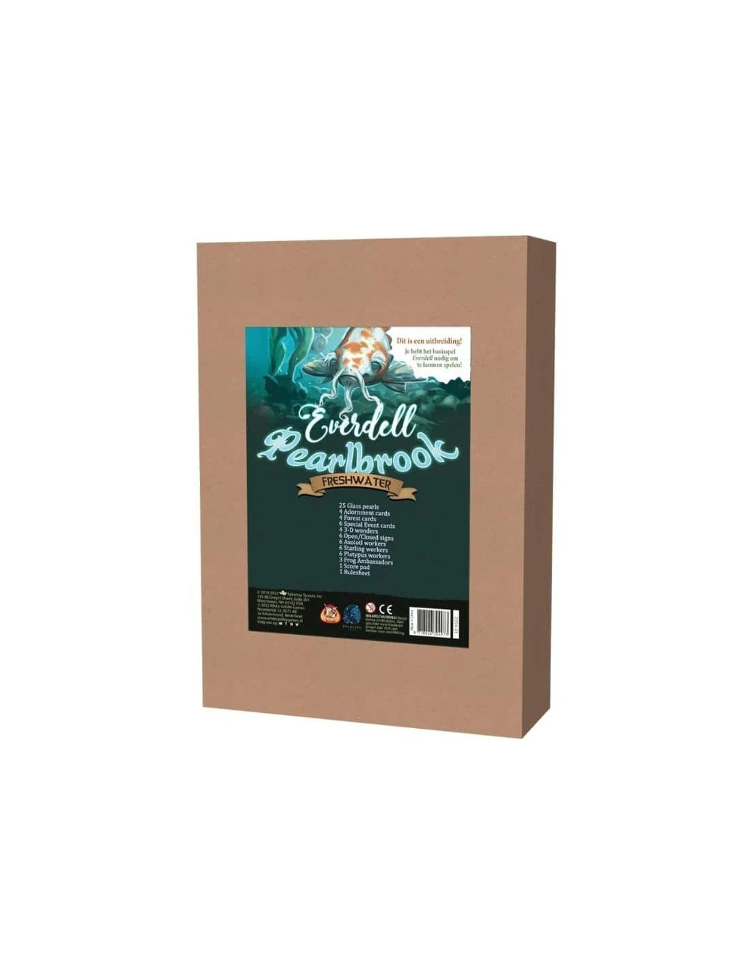 This item includes: 6 axolotl meeples with Frog Ambassador, 6 platypus meeples with Frog Ambassador, 6 starling meeples with Frog Ambassador, 25 glass pearls, punchboard including open & closed signs and 3D Wonders, scorepad, 4 Adornment cards, 6 Special Event cards, 4 Forest cards.