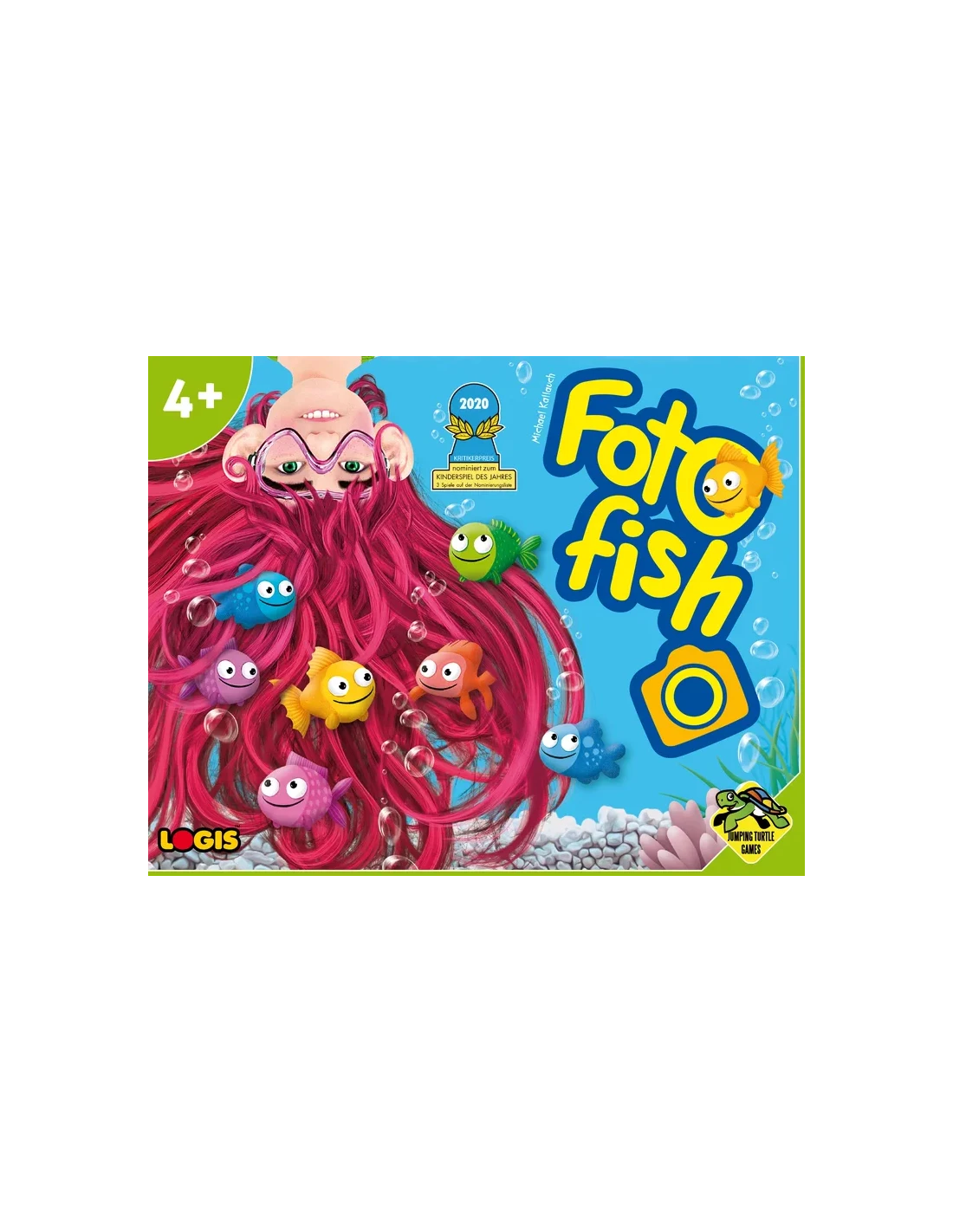 Content: 2 game boards – aquariums with 24 interchangeable details, 4 cameras of two different sizes, 4×10 different coloured fishes, 2 dice