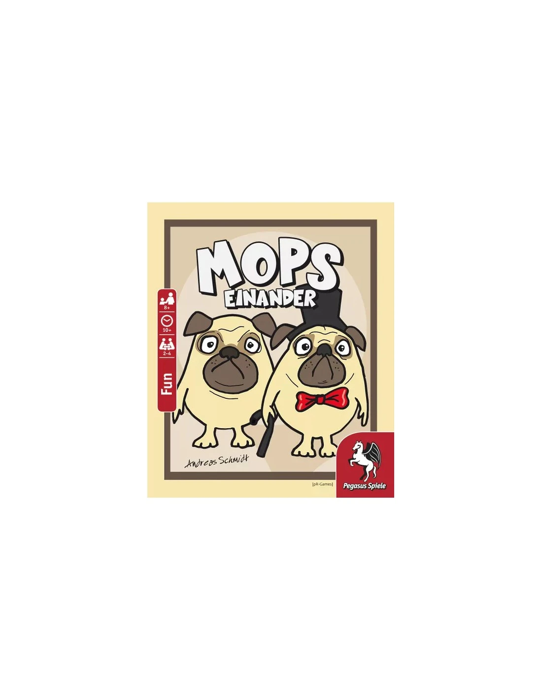 The pugs are out of control! Bright colours and many, many pugs bring joy, fun and also trouble in this turbulent and fast nightcap game! You have to recognize the right pugs in the right number quickly. A little confused is everything at Mopseinander.