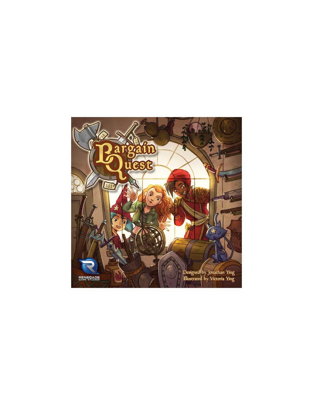 Bargain Quest is a game of adventure and capitalism for 2-6 players. Players will take the role of shopkeepers in an adventuring town plagued by monsters. Players must draft items and then secretly choose which items to place in their windows to attract wealthy heroes to their shops.