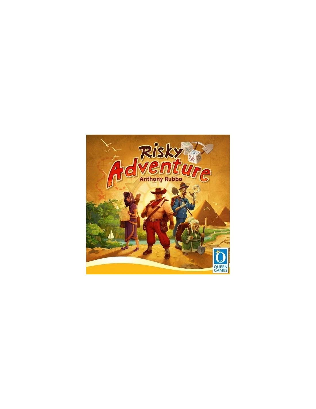 In the dice-rolling game Risky Adventure, players embark on expeditions and try to find rare artifacts in an undiscovered world. Each player assumes the role of three adventurers trying to roll the right dice combination to get equipment, discover artifacts, and find new and mysterious places. The trick: Players have to mark the things they want to roll for with their adventurers before they actually roll the dice. Assessing the risk, using the right equipment, and finding the best locations to place the adventurers will be key to win a game of Risky Adventure.
