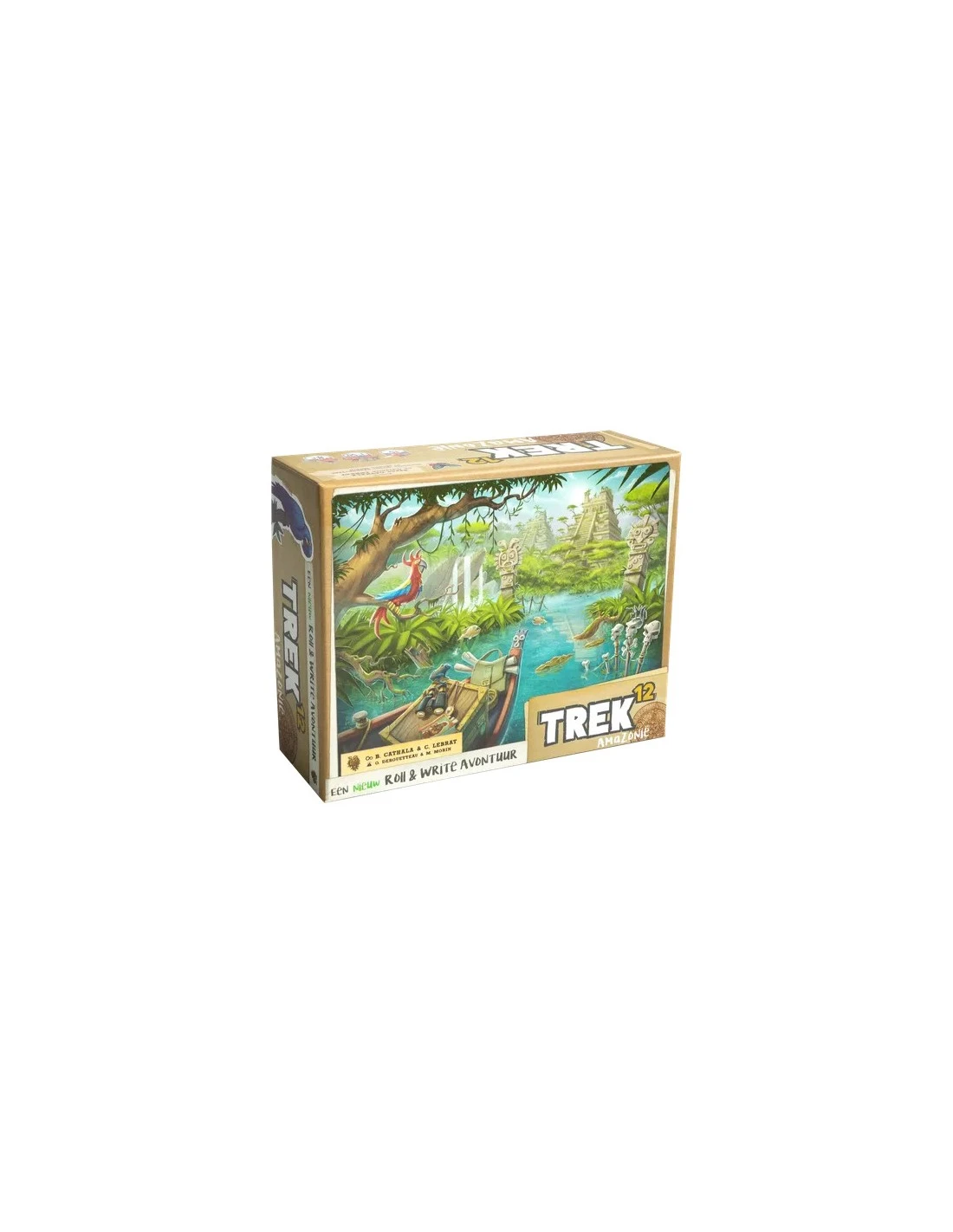 Trek 12 Amazonie is a roll-and-write exploration game, with evolutive gameplay and content. Every player plays simultaneously. To score points, you have to create trials (chains of consecutive numbers) and zones (areas of a same number) and to observe the fauna. The player who scores the most win.
