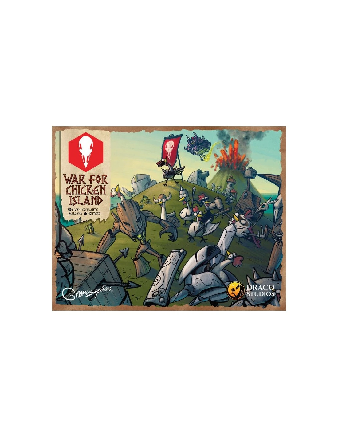 Each player will command a small army of chickens and a leader with special attributes. Besides, each player will have 5 dice that grant extra actions and 9 resources that will allow them to build machines for the battle.